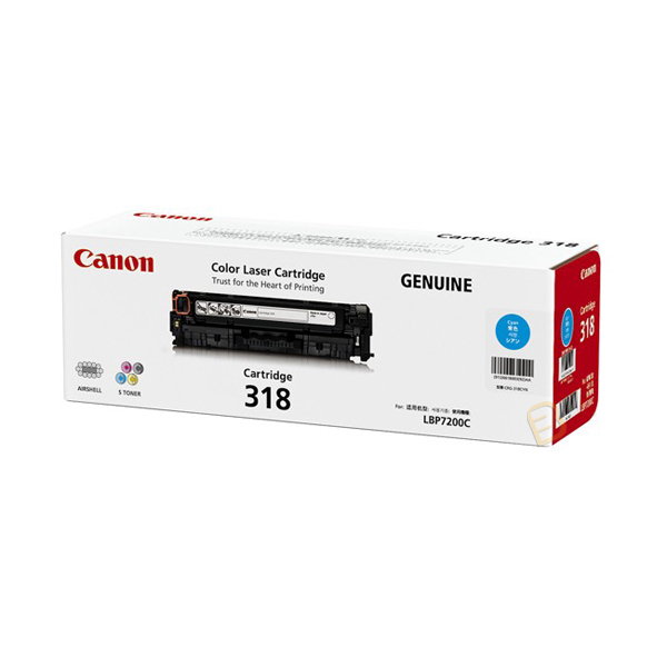 Mã mực: Canon Cartridge 318 New Loại mực: Laser màu xanh Máy dùng: Canon LBP7200cd,7200cdn Dùng lượng: 2.900 trang |